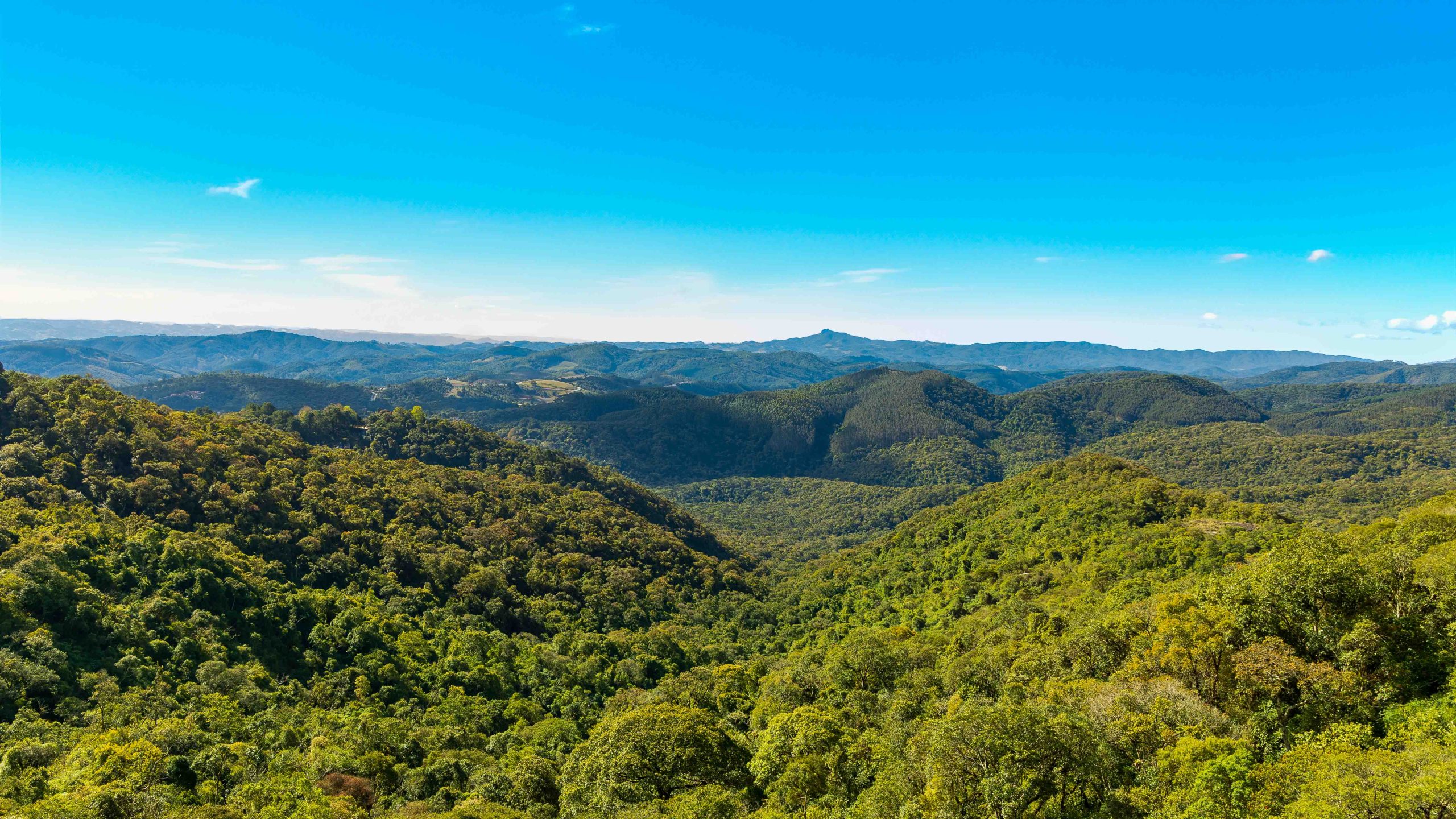 Do alto de uma das montanhas de Monte Verde, esta imagem revela a grandiosidade e a exuberância da Mata Atlântica, estendendo-se em verde até onde a vista alcança. A fotografia captura a vastidão viva e ondulante das montanhas cobertas por floresta nativa, em um momento de contemplação e conexão com a natureza.