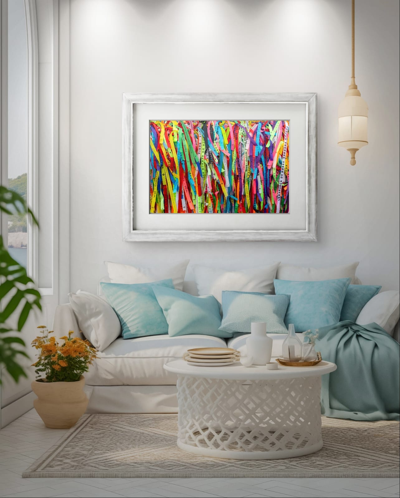 Esta obra celebra a intensidade da fé e a beleza da cultura popular brasileira por meio de uma profusão de cores e significados. As tradicionais fitas de Nossa Senhora d’Ajuda, registradas nesta imagem em Arraial d’Ajuda (BA), representam desejos, orações e promessas de milhares de pessoas que visitam o santuário.
