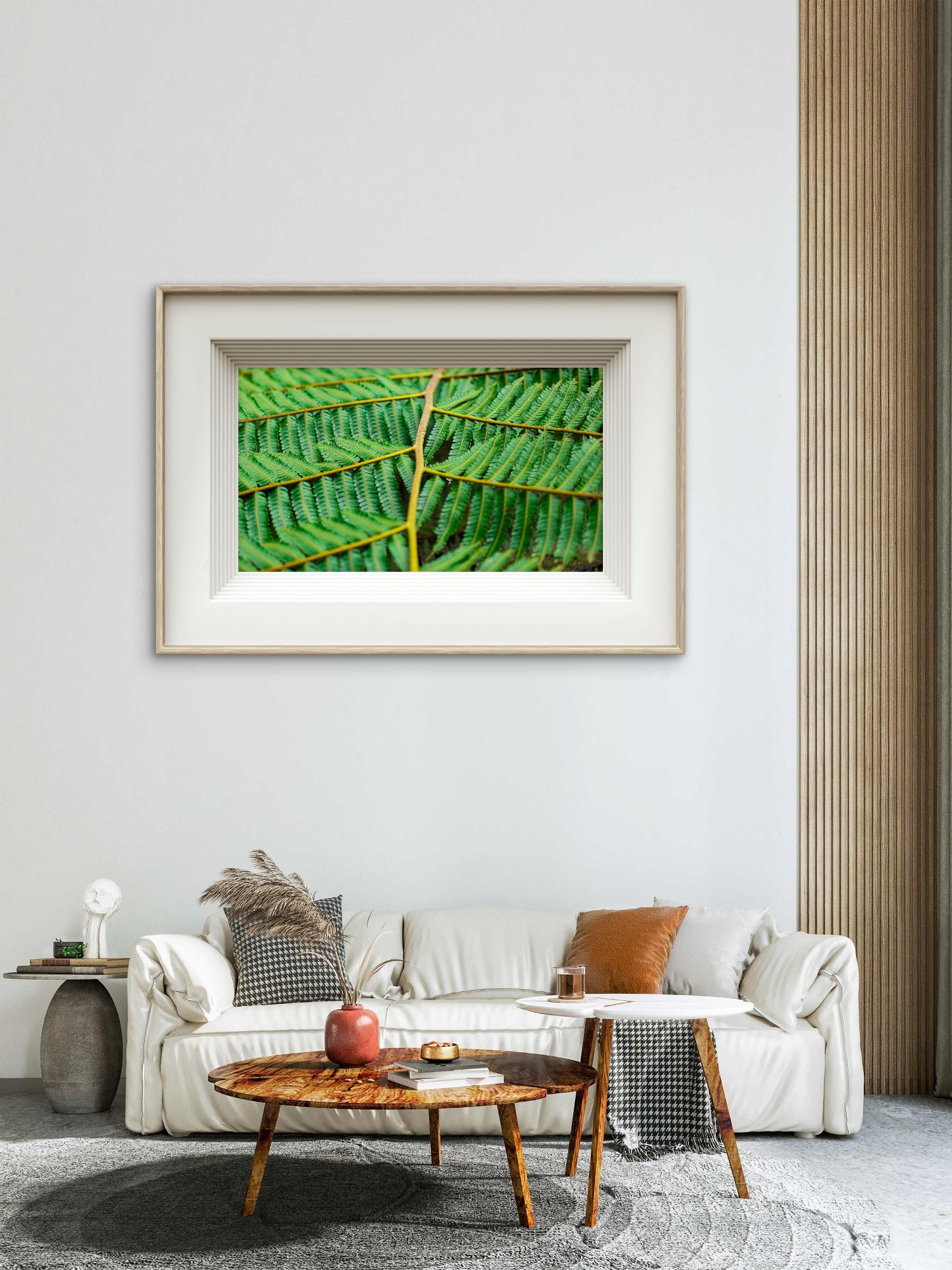 Fotografia macro de uma Samambaia-Açu, revelando em detalhes suas formas e texturas orgânicas. Impressão fine art em papel Hahnemühle Canvas Art Smooth 370g, com qualidade museológica.